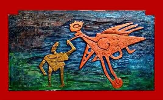 This is an acrylic painting of an animal which portrays a man who got kidnapped and got lost but trying to find a means of getting to his destination though in fearfulness.