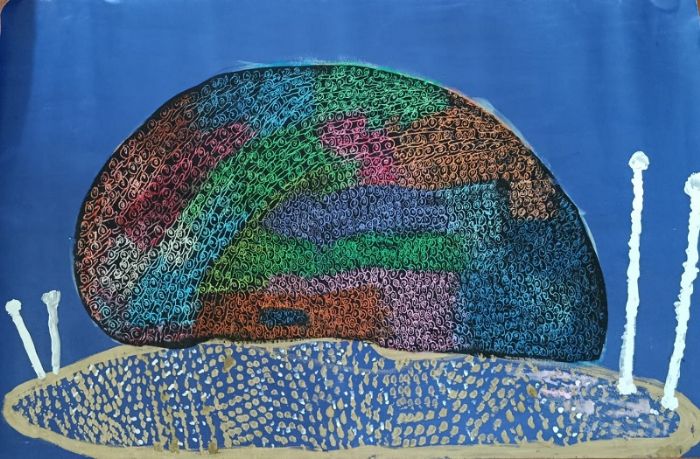 Orna Oryan, Industrial oil paint, acrylic and pastel on unstretched canvas, 61 by 97 cm