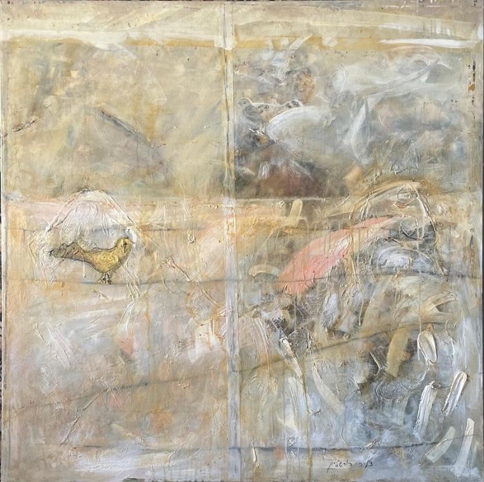 Dalia Bursztyn, Collage and oil on canvas, 100 by 100 cm,