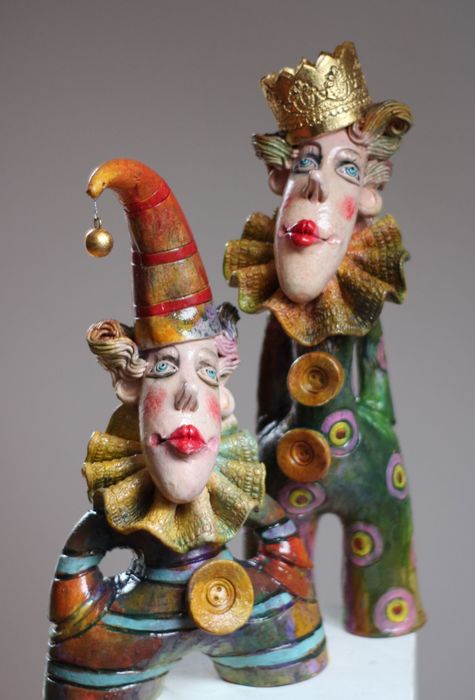 Ceramic sculptures, hand-made, fired at 1100 degrees C, cold painted, own technique, decorated with schlagmetal, signed ANNAART, author: Anna Płonka