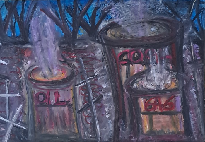My work explores the delicate balance between human creation and ecological decline. Through mixed media, found objects, recycled plastic, oil pastels, spray paint, and acrylic colours, I transform discarded materials into poetic reflections on the changing climate.