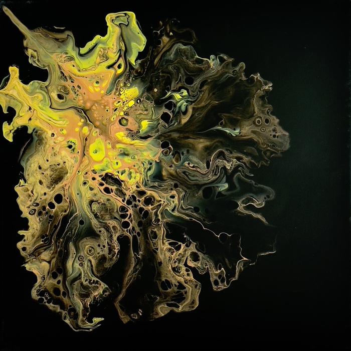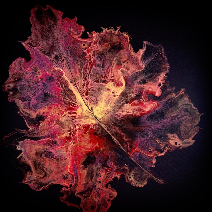 No brushes! This is a creation of the elements of fire, water and air.