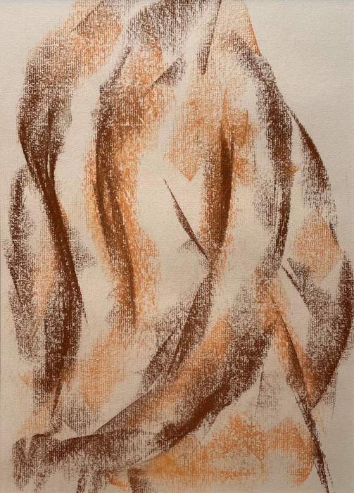 Soft, undulating figurative drawings in soft pastels and charcoal on paper.